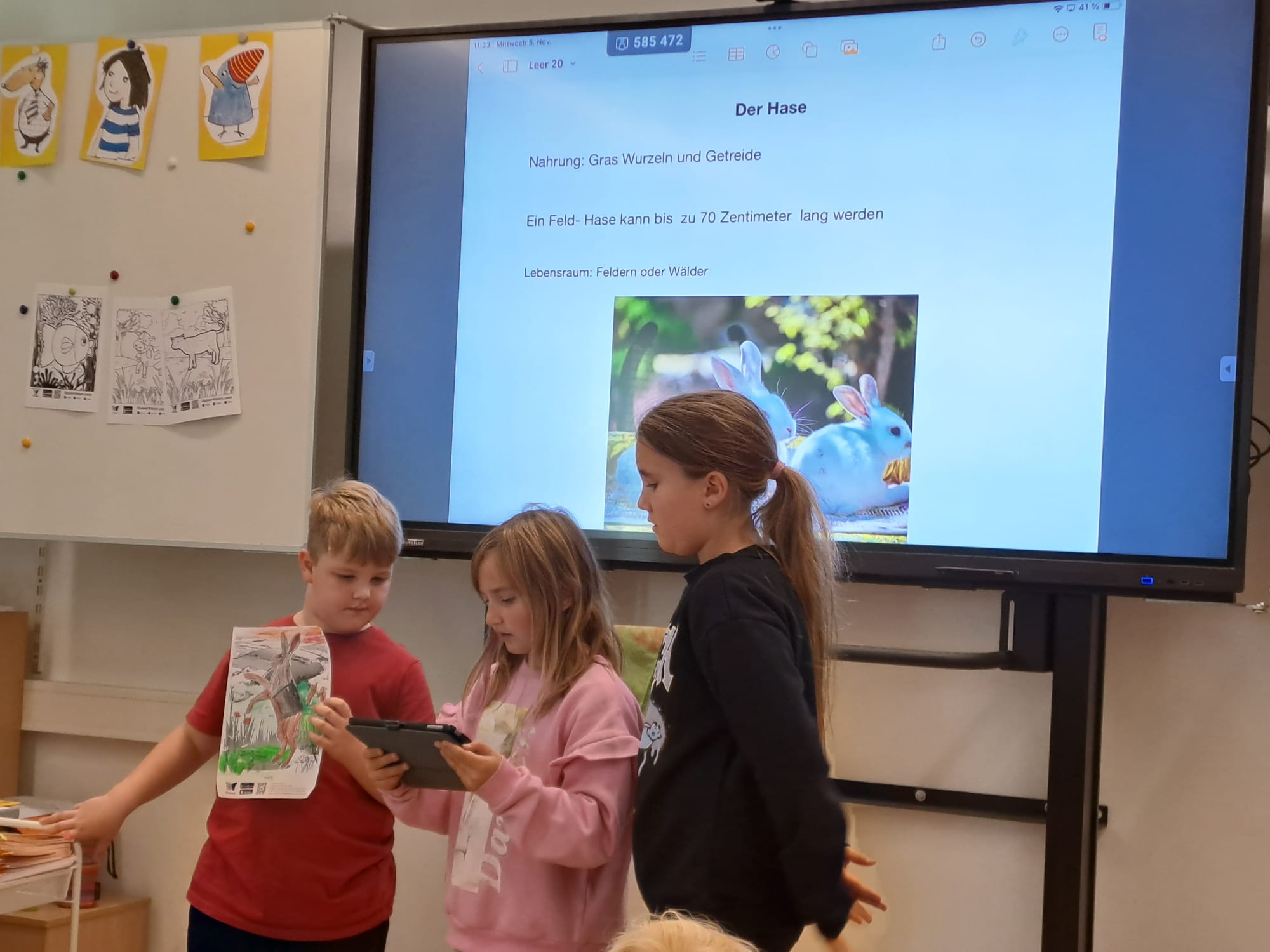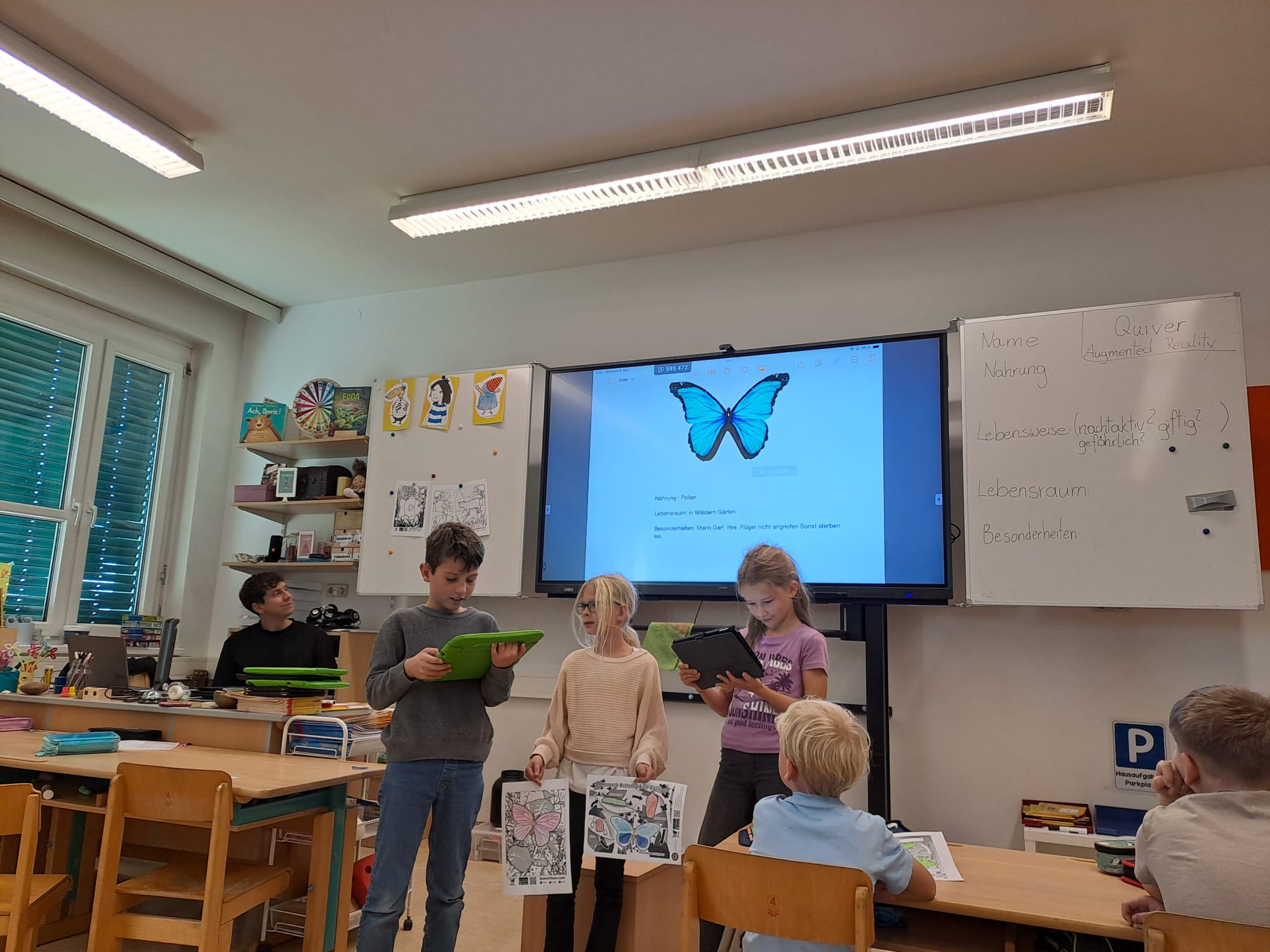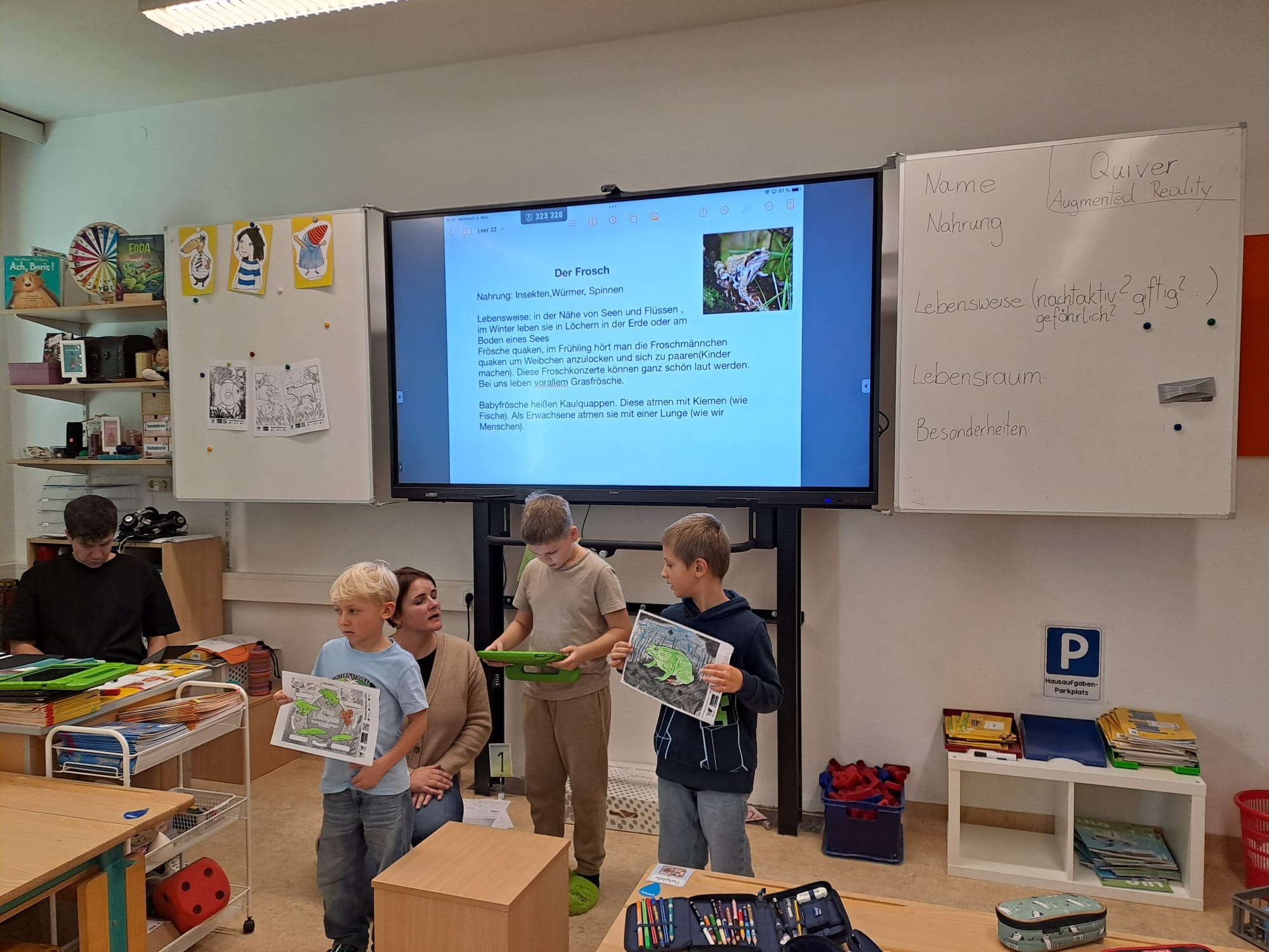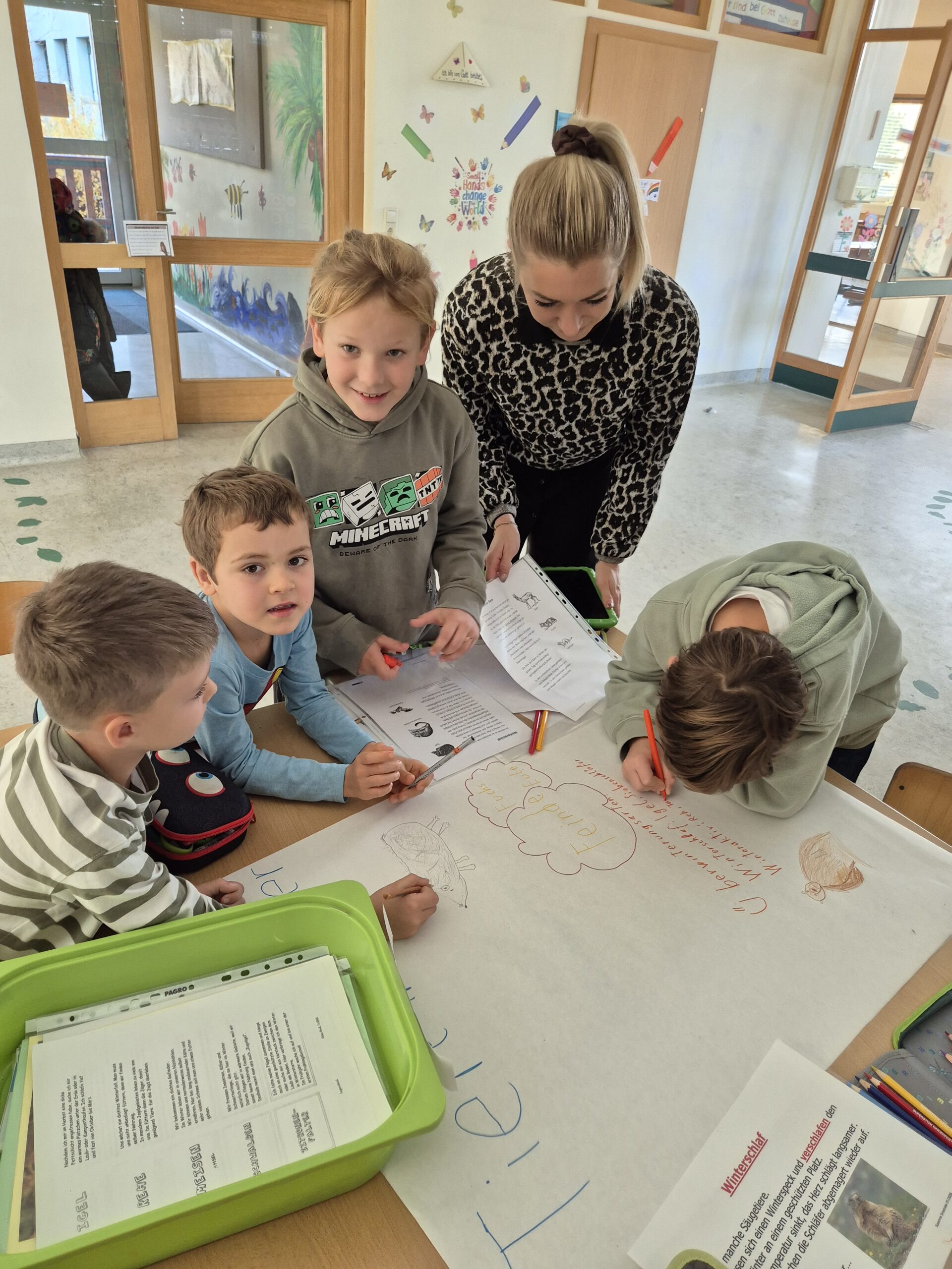 Im Musikunterricht stand „Der Karneval der Tiere“ im Mittelpunkt, es wurden Plakate für Referate gestaltet, Steckbriefe zu verschiedenen Tieren verfasst und typische Bewegungen der Tiere nachgeahmt. Außerdem begaben sich die Kinder auf Spurensuche in der Natur und gestalteten Tiercollagen und vieles mehr.