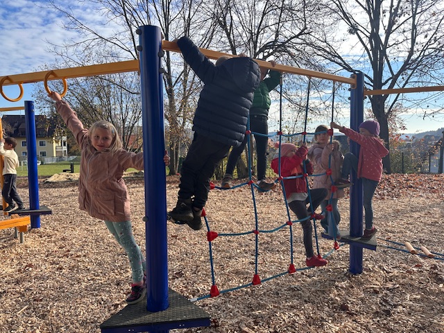 Unser neuer Spielplatz ist nicht nur in den Hofpausen, sondern auch in den Turnstunden eifrig im Einsatz. Da wird geklettert, balanciert und geturnt. Bewegung an der frischen Luft tut gut und macht mit dem neuen Kletterparcour besonders viel Freude.